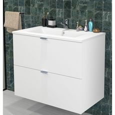 Vasque en résine blanc brillant - Panneaux de particules surfacés mélaminés - Poignées métal