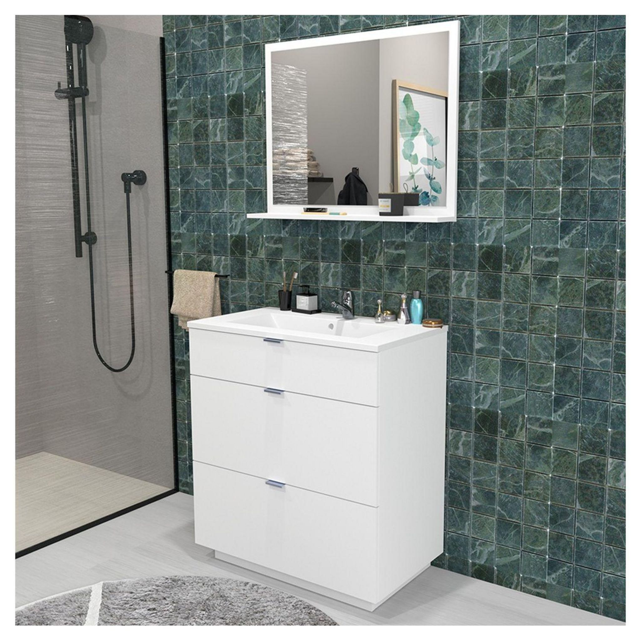 L'ensemble de salle de bain FARO offre style et praticité avec son meuble sous vasque 3 tiroirs, vasque en résine blanc brillant et miroir assorti. Fabriqué en Union européenne, en panneaux de particules surfacés mélaminés, il présente des poignées métalliques pour une touche moderne. La couleur blanche ajoute une élégance intemporelle à votre salle de bain.
