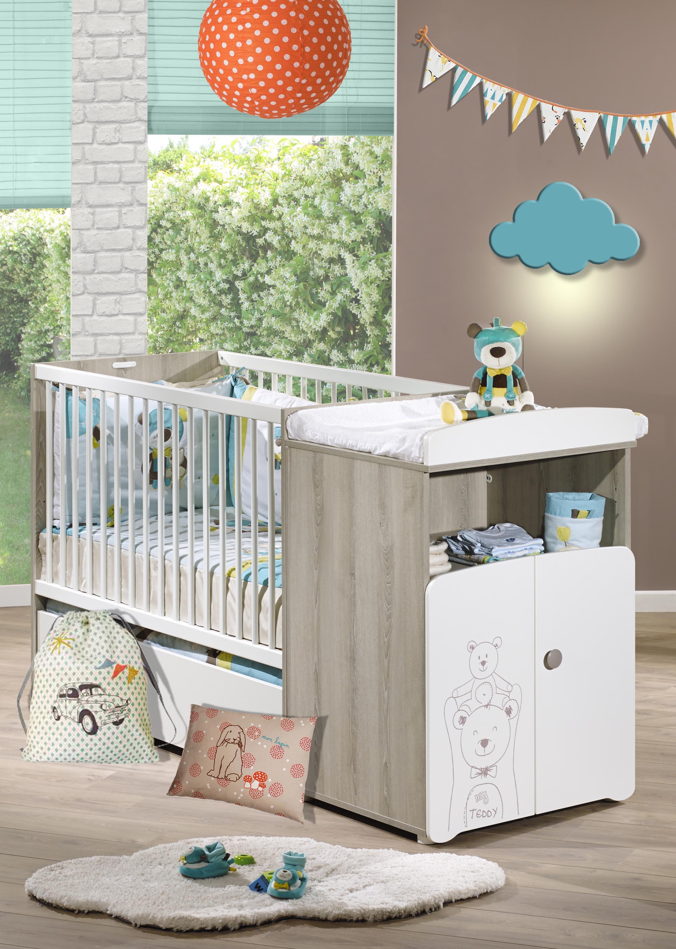Ensemble Lit bébé combiné 60x120 cm évolutif en 90x190 + armoire TEDDY