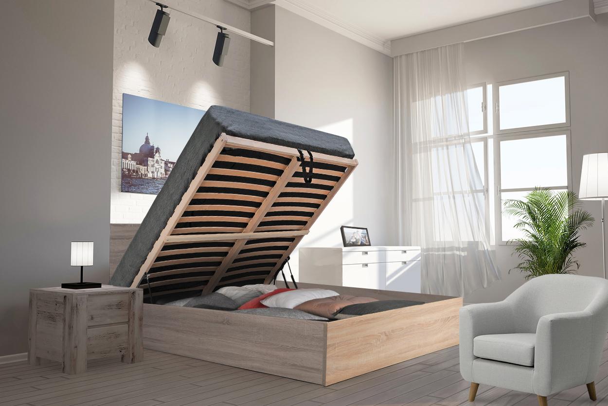 Ensemble Lit coffre avec sommier relevable 140x190 cm BARCELONA + matelas 140x190 cm DIONE