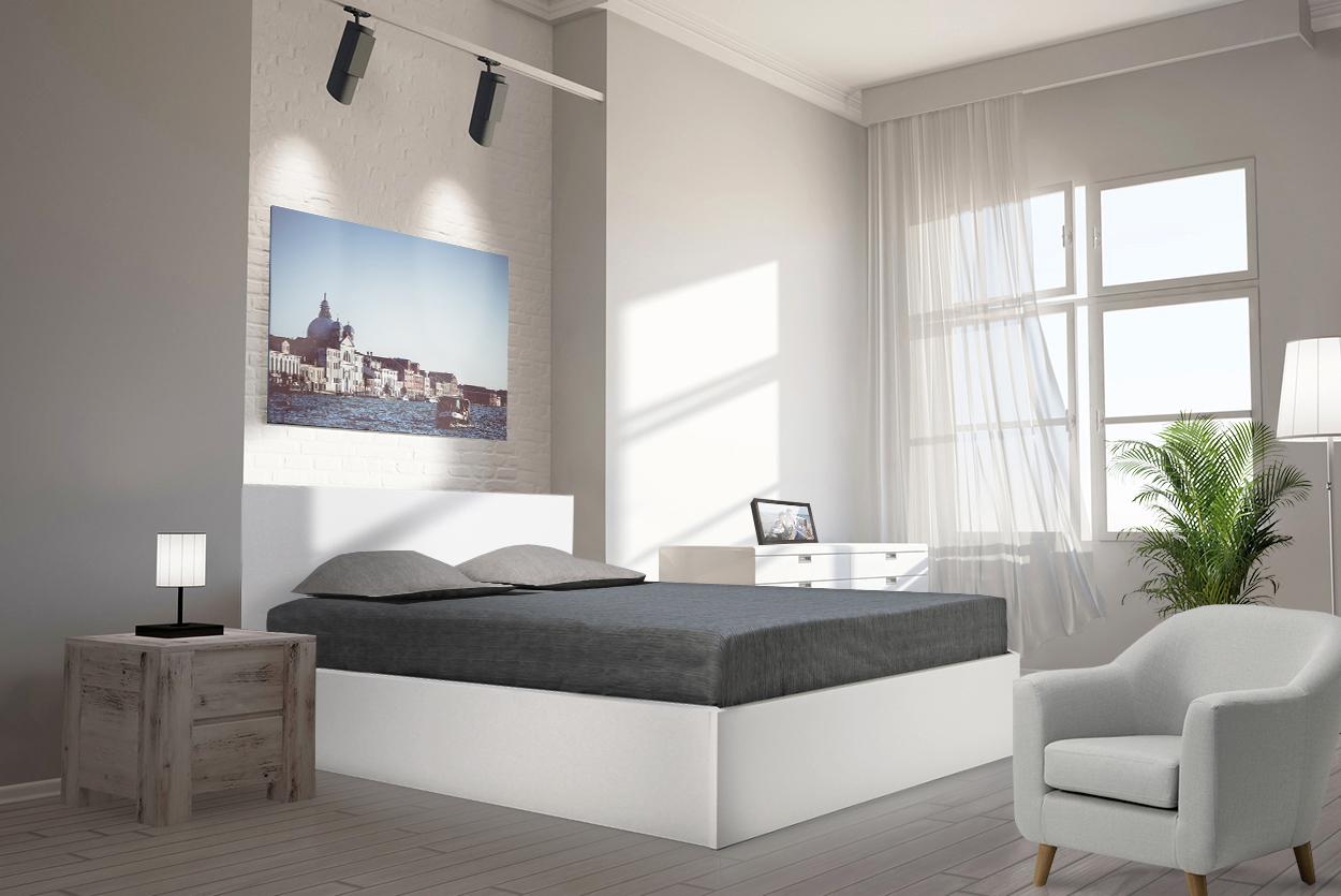 Coloris blanc chêne ou gris - Volume de rangement sous le lit - Matelas mousse 30kg/m3
