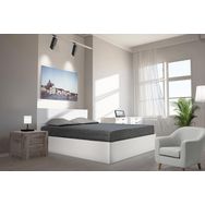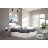 Lit coffre de coloris blanc ou chêne avec une structure en panneaux de particules finition mélaminé.