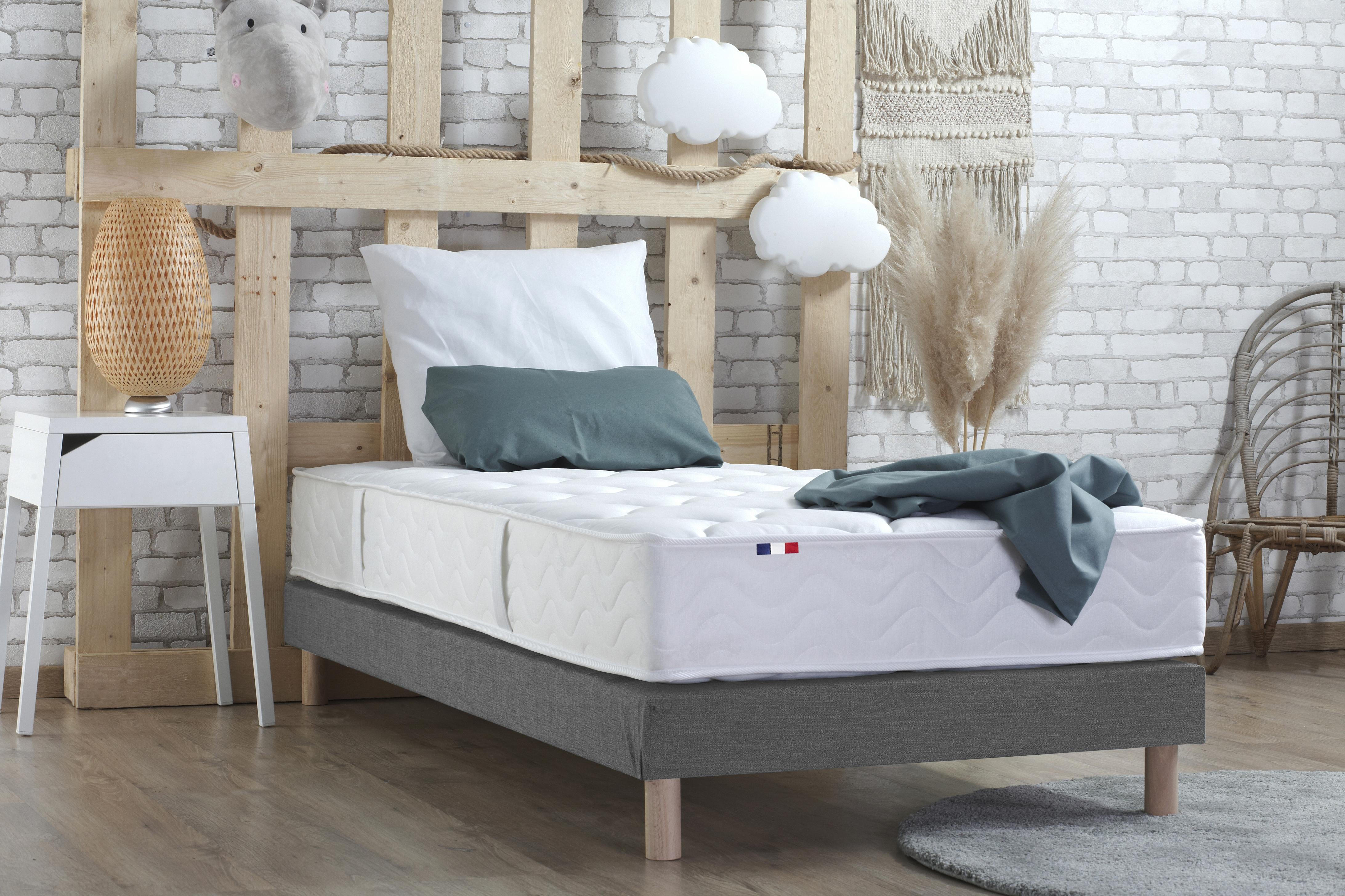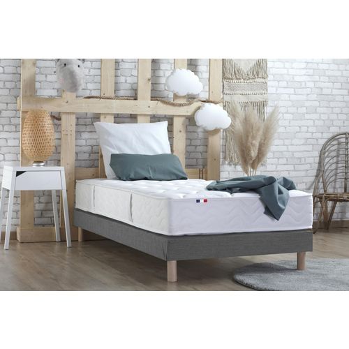 Ensemble literie matelas 378 ressorts ensachés + sommier tapissier gris chiné 90x190 cm ASTRE