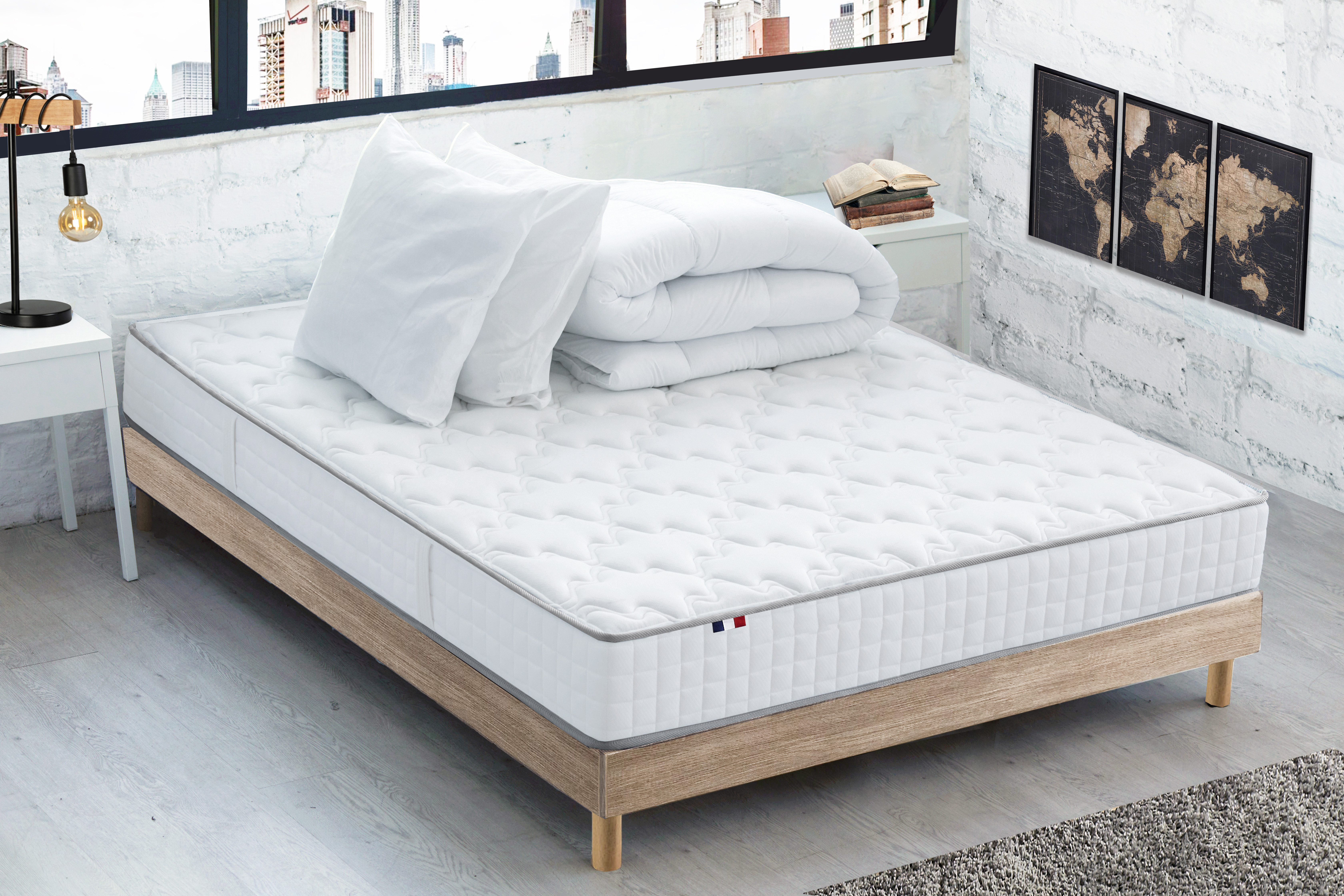 Ensemble literie prêt à dormir Paul 160x200 cm : matelas + sommier + couette + oreillers