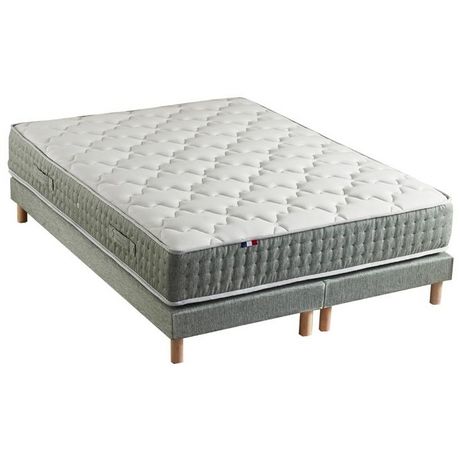 Pour faire le bon choix, jetez votre dévolu sur ce superbe ensemble HYGGE de taille 160x200cm. Matelas épais de 26cm, équipé de 792 ressorts ensachés et muni de 7 zones de confort différenciés enrobés de mousse ferme d'une densité de 25kg/m3, il a été pensé pour parvenir à une indépendance de couchage et un confort parfait, afin que ses futurs propriétaires puissent profiter de belle et longue nuit, d'un sommeil réparateur et non gêné. Élaboré avec un soutien ferme et un accueil moelleux, il dispose de 7 zones de soutien différenciées, pour bénéficier d'une agréable sensation de confort tout en gardant une posture et un maintien approprié tout au long de la nuit. Il est également doté de 2 faces adaptées et conçus spécialement pour l'hiver et l'été. Côté finition, il en fera rougir plus d'un avec ses plates-bandes capitonnées vert céladon, ses poignées de manutention et son aérateur, sans oublier son coutil stretch 100% polyester. Galonné 2 faces, fabrication 100% française.