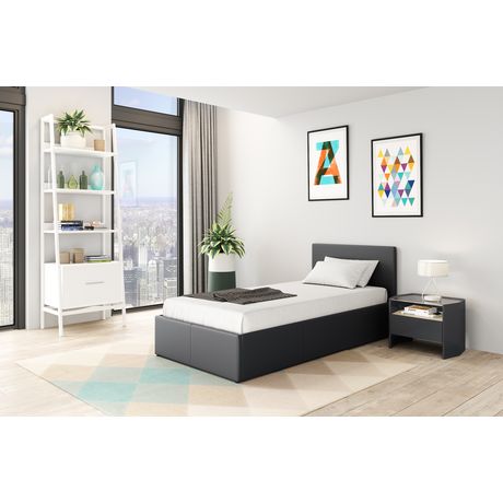 Ensemble matelas 90x190cm + Lit coffre 90x190cm sommier inclus avec tête de lit WILLOW gris