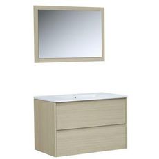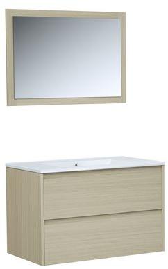 Ensemble meuble de salle de bain bloc 2 tiroirs avec vasque encastrée et miroir L80 cm LAKE