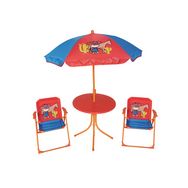 L'ensemble de salon de jardin proposé par la marque CIDDECO est composé d'une table, de 2 chaises, et d'un parasol. Il est conçu avec une structure en acier et les assises en polyester. Ce salon de jardin saura séduire vos enfants grâce à son effigie de cowboys et son ambiance western qui les protégera durant les jours de chaleurs . Dimensions Table Diamètre 50 x 49 cm. Dimensions de chaise : 38,5 x 36 x 50 cm. Dimensions parasol : Diamètre 105 cm.