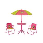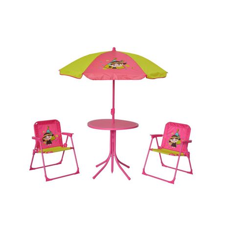 L'ensemble de salon de jardin proposé par la marque CIDDECO est composé d'une table, de 2 chaises, et d'un parasol. Il est conçu avec une structure en acier et les assises en polyester. Ce salon de jardin saura séduire vos enfants grâce à son effigie d'une jolie petite indienne qui protégera vos enfants durant les jours de chaleurs . Dimensions Table Diamètre 50 x 49 cm. Dimensions de chaise : 38,5 x 36 x 50 cm. Dimensions parasol : Diamètre 105 cm.