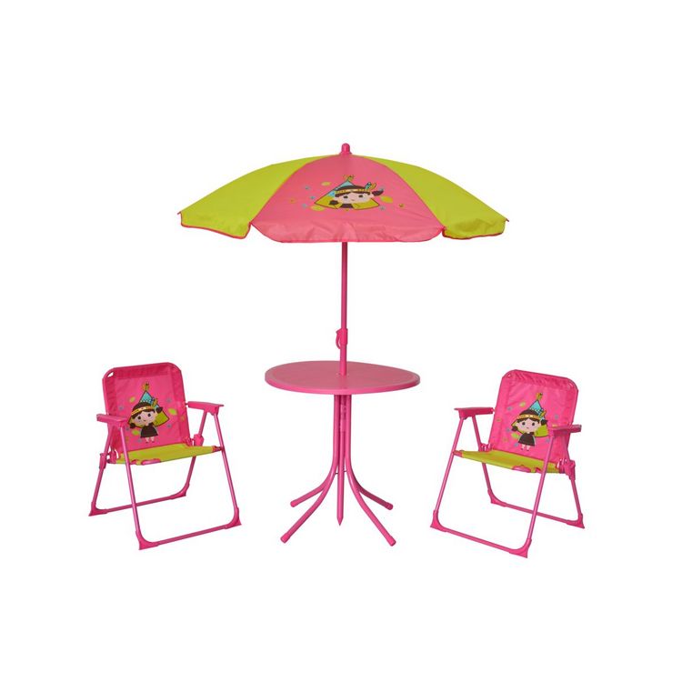 L'ensemble de salon de jardin proposé par la marque CIDDECO est composé d'une table, de 2 chaises, et d'un parasol. Il est conçu avec une structure en acier et les assises en polyester. Ce salon de jardin saura séduire vos enfants grâce à son effigie d'une jolie petite indienne qui protégera vos enf