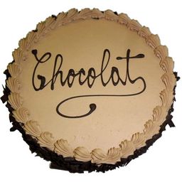 Ingredients: creme au beurre 46%(BEURRE(43%), sucre, OEUF, eau, pate de cacao (8%)), genoise 30%(OEUF, sucre, farine de BLE, amidon de BLE, eau, emulsifiant: E472b E477(LAIT), stabilisant: E420, poudre de cacao 2%, poudre a lever: E450 E500(BLE), sel, conservateur: E202, gelifiant: E410, arome vanille, colorant: E160b E101), sirop(sucre, eau), copeaux chocolat(pate de cacao, sucre, beurre de cacao, huile butyrique(LAIT), emulsifiant: E322(SOJA), arome naturel de vanille). Decor: cacaopate