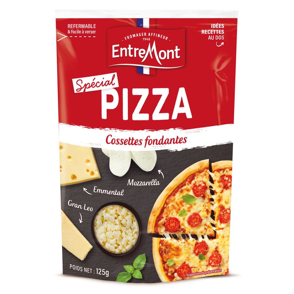 Emballage pratique : Facile à verser. 3 fromages découpés en petites cossettes parfaitement adaptées à la préparation de toutes vos pizzas.
