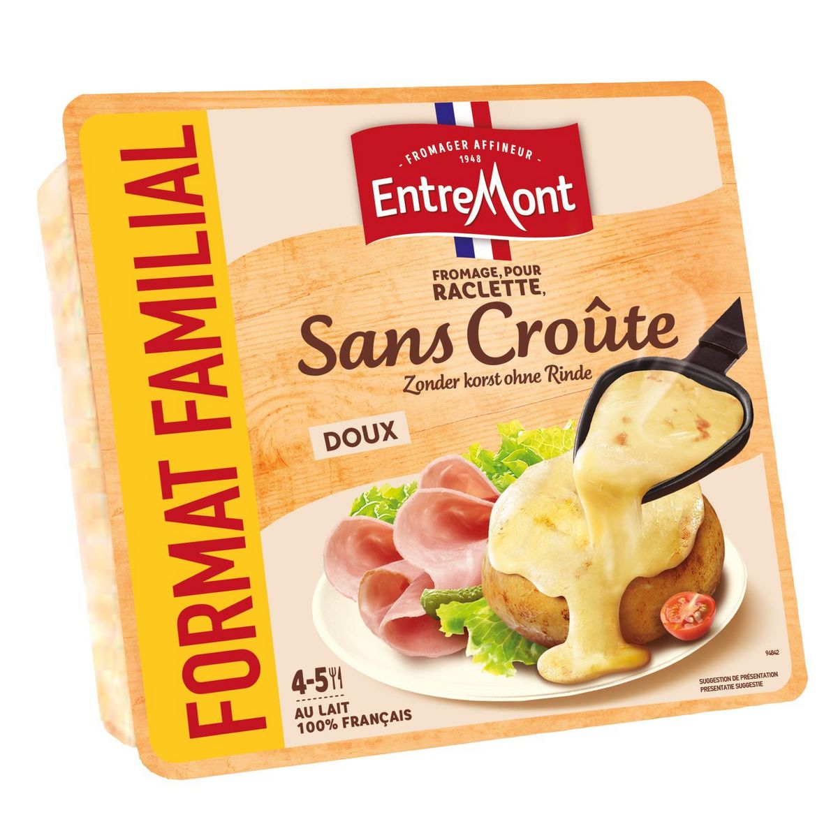 Avec la Raclette Sans Croûte Entremont, retrouvez toute la saveur d’une raclette douce et onctueuse sans la croûte. Affinée 8 semaines sur planche d'épicéa, c'est l'incontournable de vos moments raclette pour encore plus de plaisir et de gourmandise.