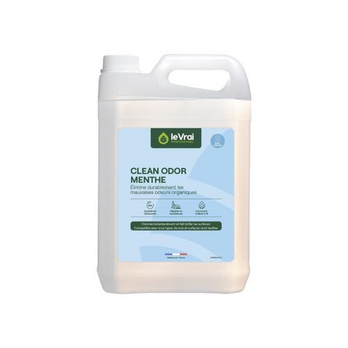 Cet Odorisant écologique LE VRAI PROFESSIONNEL - Menthe - 5L est idéal pour le traitement des odeurs sur tout type de surface : linges, toilettes, plinthes, tapis, rideaux, différents types de sols, etc. Il peut être dilué pour nettoyer les sols ou directement pulvérisé pour les odeurs. Ce produit contient 93% d'ingrédients d'origine naturelle et élimine ainsi biologiquement les salissures et les mauvaises odeurs.