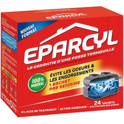 La solution simple pour une fosse tranquille Activateur biologique* indispensable pour le bon fonctionnement de votre fosse Fini les oublis d'entretien de votre fosse grâce au calendrier-mémo EPARCYL 100% Minéral 5 mois et demi de traitement EPARCYL vous propose une gamme de produits sans danger pour la fosse Action Immédiate