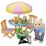 2 Figurines Papa Chien Marron et Garçon Chien Marron, 1chaise longue, 1 protège vent, 1 nappe à carreaux, 1 sac à dos, 1 petit seau, 1 grand seau, 1 pelle, 2 petits drapeaux, 1 bouée canard, 1 ballon, 1 thermos, 1 tasse, 2 glaces et leur support, 2 assiettes, 2 verres, 2 fourchettes, 2 couteaux, 1 régime de 3 bananes, 1 pomme, 1 orange, 2 sandwiches et leur boîte de conservation, 1 journal et des cartes postales