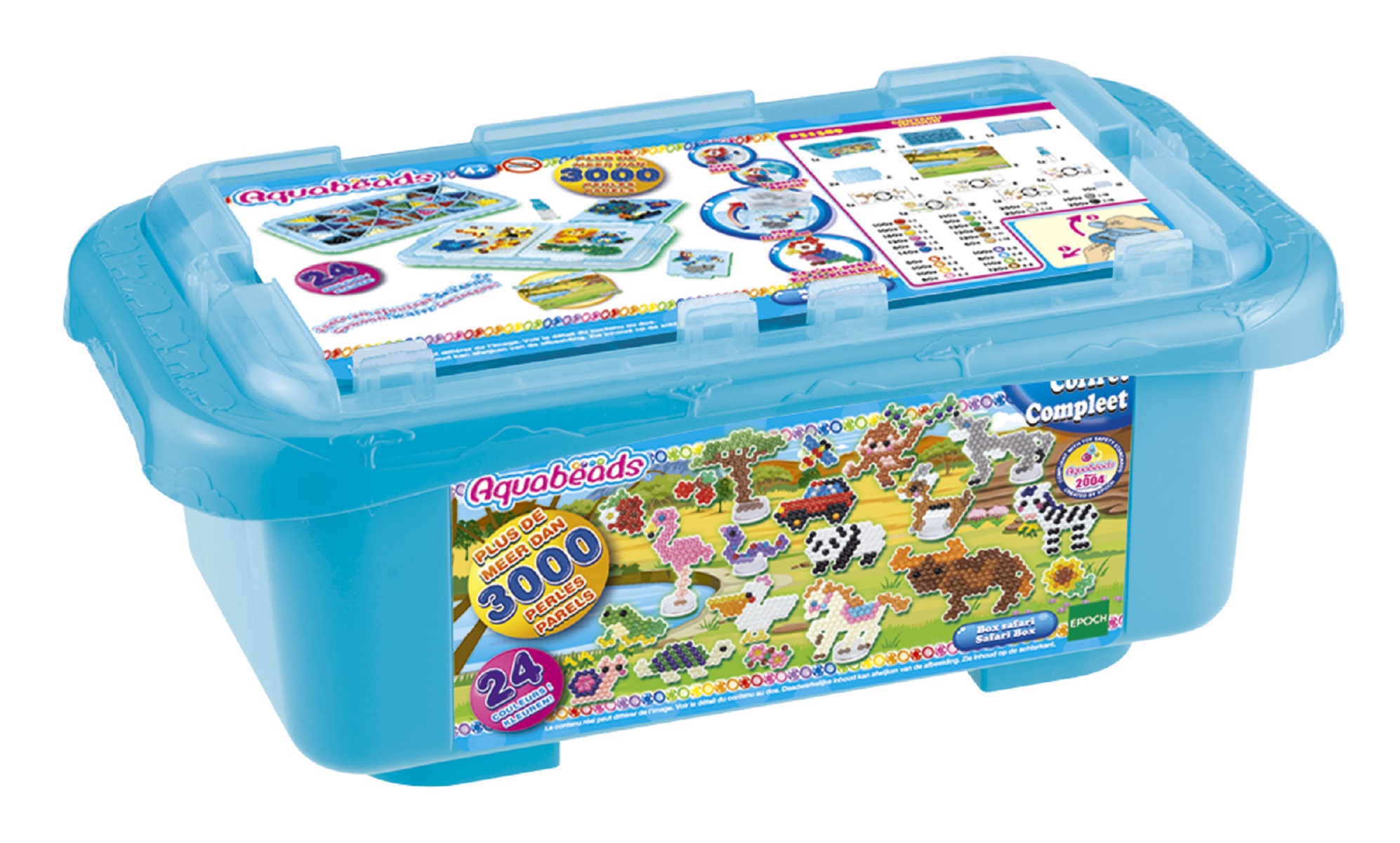 Votre enfant va réaliser de nombreuses créations avec cette Box Safari Aquabeads. Le principe est simple et... étonnant ! Il faut assembler les perles, les vaporiser avec de l'eau et les laisser sécher. Wahou ! les perles collent ensemble comme par magie ! Cette Box Aquabeads est parfaite pour les enfants qui aiment les animaux, en particulier ceux du Safari. Il y a plus de 3000 perles classiques et multi-facettes à assembler pour réaliser une trentaine d'animaux (singe, lion, serpent, éléphant, perroquet...). Votre enfant pourra ensuite jouer avec ses créations sur le tapis de jeu inclus et inventer de folles histoires !