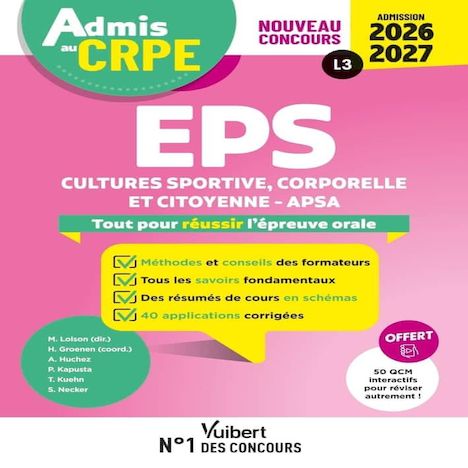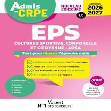 Un manuel rédigé par des jurys de concours au service de votre réussite ! Préparez-vous efficacement à la seconde épreuve d'admissibilité d'EPS du nouveau concours de professeur des écoles, grâce : - aux méthodes et conseils de vrais jury de concours , - à des tests d'autoévaluation pour personnaliser vos révisions , - à des fiches de cours aérées pour maîtriser l'ensemble des savoirs disciplinaires , - à des résumés de cours 100 % visuels pour mémoriser facilement , - + de 150 QCM et exercices corrigés pour s'entrainer de manière efficace. OFFERT en ligne : - 50 QCM de révision interactifs pour contrôler vos connaissances , - 1 sujet zéro corrigé pour être prêt pour le jour J.