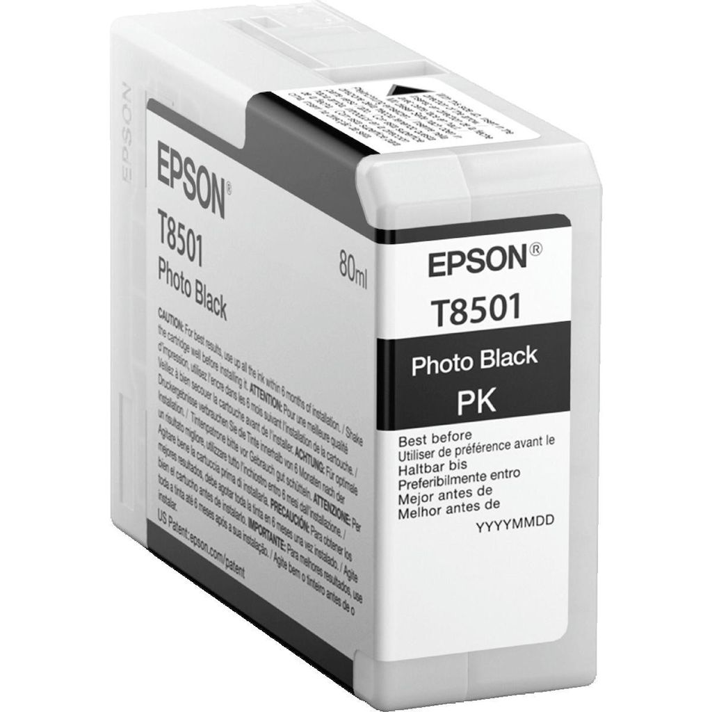 Découvrez la cartouche d'encre Epson T8501, spécialement conçue pour les imprimantes Epson SureColor P800. Cette cartouche originale de 80 ml contient une encre photo noire à base de pigments, offrant une qualité d'impression professionnelle avec des couleurs profondes et un contraste saisissant. Id