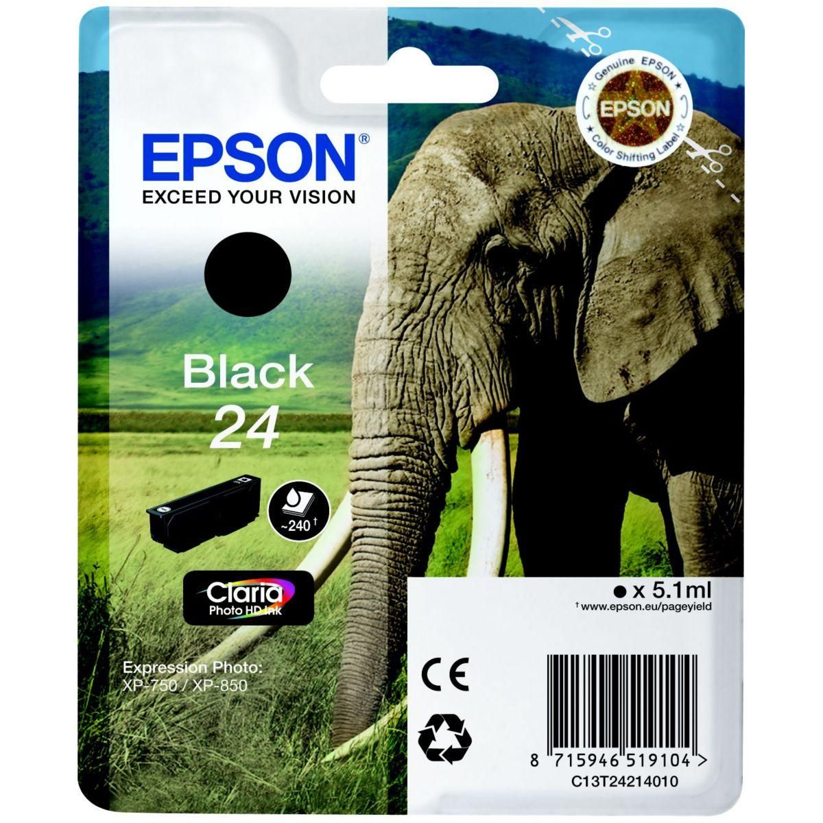 Cartouche d'encre T2421 Noire Série Eléphant