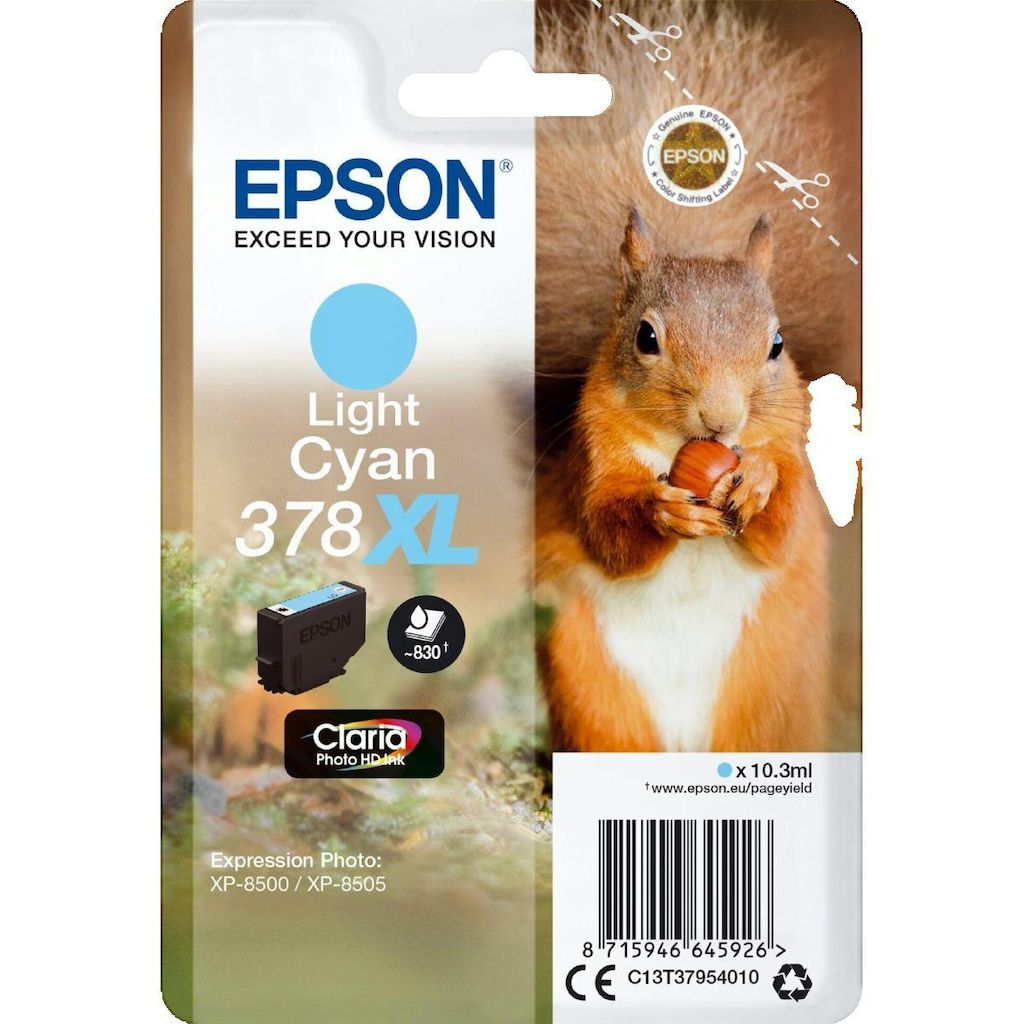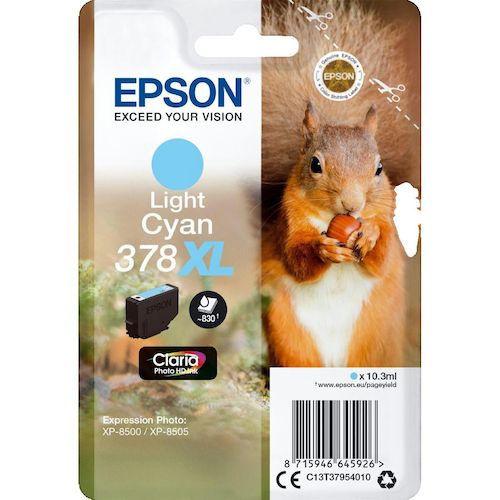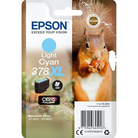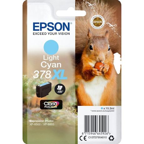 La cartouche d'encre Epson Squirrel Singlepack Light Cyan 378XL est spécialement conçue pour les imprimantes Expression Photo XP-8500 et XP-8505. Elle contient 10,3 ml d'encre à base de pigments avec technologie jet d'encre pour des impressions de haute qualité, riches en couleurs vives et détails p