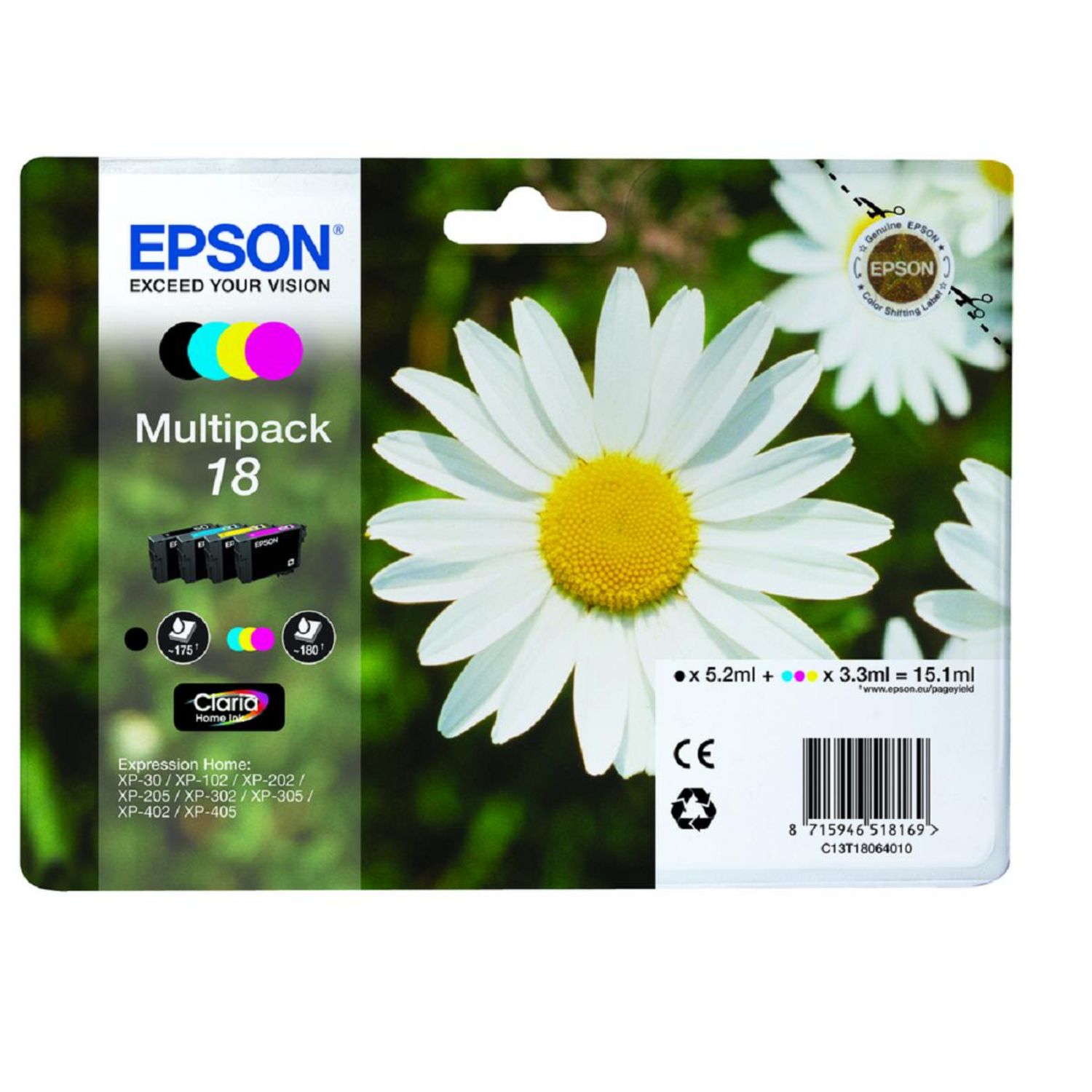 - Compatibilité Étendue : Le pack de cartouches "Paquerette" n°18 est spécialement conçu pour fonctionner avec une gamme d'imprimantes Epson Stylus et XP, offrant une polyvalence exceptionnelle. Il est parfaitement compatible avec les modèles : Epson XP-30, XP-102, XP-202, XP-205, XP-302, XP-305, XP-402, XP-405.