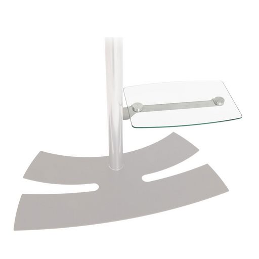 De plus, avec sa peinture époxy aspect chrome et sa partie en verre, cette tablette mettra parfaitement en valeur votre meuble télévision, mais aussi le contenu supporté sur la tablette.