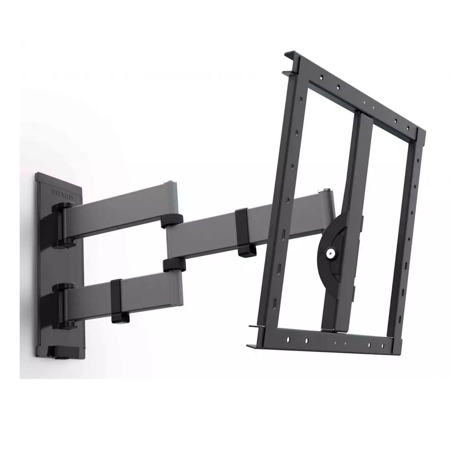 Erard 048740 Support mural 048740 d'Erard inclinable & orientable avec déport pour écrans de 40 à 80.Bras en acier, soudure laser, peinture époxy couleur titane.Platines écran et murale en acier, peinture époxy noire.Platine murale avec 3 points de fi xation.Rondelles de fixation excentriques pour c