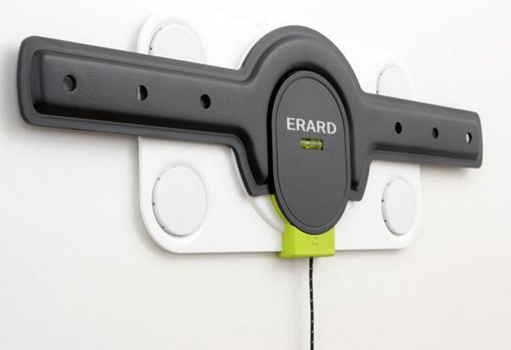 Erard 044040 Support mural ERARD 044040.Système anti-décrochement de l'écran.Niveau à bulle intégré.Installation facile (matériel de montage fourni pour murs pleins).Système de rondelles excentriques pour corriger les erreurs de perçage.Compatible avec les écrans munis de connectiques arrières perpendiculaires à l'écran grâce à l'ajout des entretoises intercalables fournies.CLIC ! : Signal de verrouillage du support sur la platine murale.Level Check : Niveau à bulle intégré - Permet de vérifier l'horizontalité du support lors du perçage.Extra-plat : l'écran est au plus prés du mur : 16 mm.Easy setting : Ajustement de l'horizontalité de la platine murale .Possible après le perçage grâce à un système breveté de 4 rondelles excentriques. Montage facile : 1 seule personne nécessaire.
