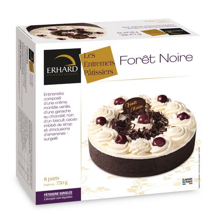 Ingrédients : CREME (CREME, stabilisant : carraghénanes), éclats de cerise amarena aromatisée (cerise 7,5%, sucre, sirop de glucose-fructose, eau, jus d'amarena 0,1%, colorant : anthocyanes, correcteur d'acidité : acide citrique, arômes, conservateur : ANHYDRIDE SULFUREUX), chocolat noir à 50% de cacao 11% (pâte de cacao, sucre, beurre de cacao, émulsifiant : lécithine de SOJA, arôme naturel de vanille), OEUFS entiers pasteurisés, eau, sirop de sucre inverti, sucre, farine de BLE, sucre glace (sucre, amidon de maïs), cerise amarena aromatisée (cerise 1,4%, sucre, sirop de glucose-fructose, jus d'amarena 0,04%, colorant : anthocyanes, acidifiant : acide citrique, arômes, conservateur : ANHYDRIDE SULFUREUX), jaune d'OEUF pasteurisé, cacao maigre en poudre 0,6%, décor en chocolat (pâte de cacao, sucre, beurre de cacao, matière grasse LAITIERE anhydre, émulsifiant : lécithine de SOJA, arôme naturel de vanille), plaquette décor (pâte de cacao, sucre, beurre de cacao, émulsifiant : lécithine de tournesol, arôme naturel de vanille, colorants : curcumine - riboflavines), arôme naturel de vanille, stabilisant : sorbitols, émulsifiant : mono- et diglycérides d'acides gras, arôme naturel orange, gélifiant : carraghénanes, gluten de BLE.Traces éventuelles de FRUITS À COQUE. Les informations en majuscules sont destinées aux personnes intolérantes ou allergiques. Crème et chocolat origine UE, amarena origine UE et non UE