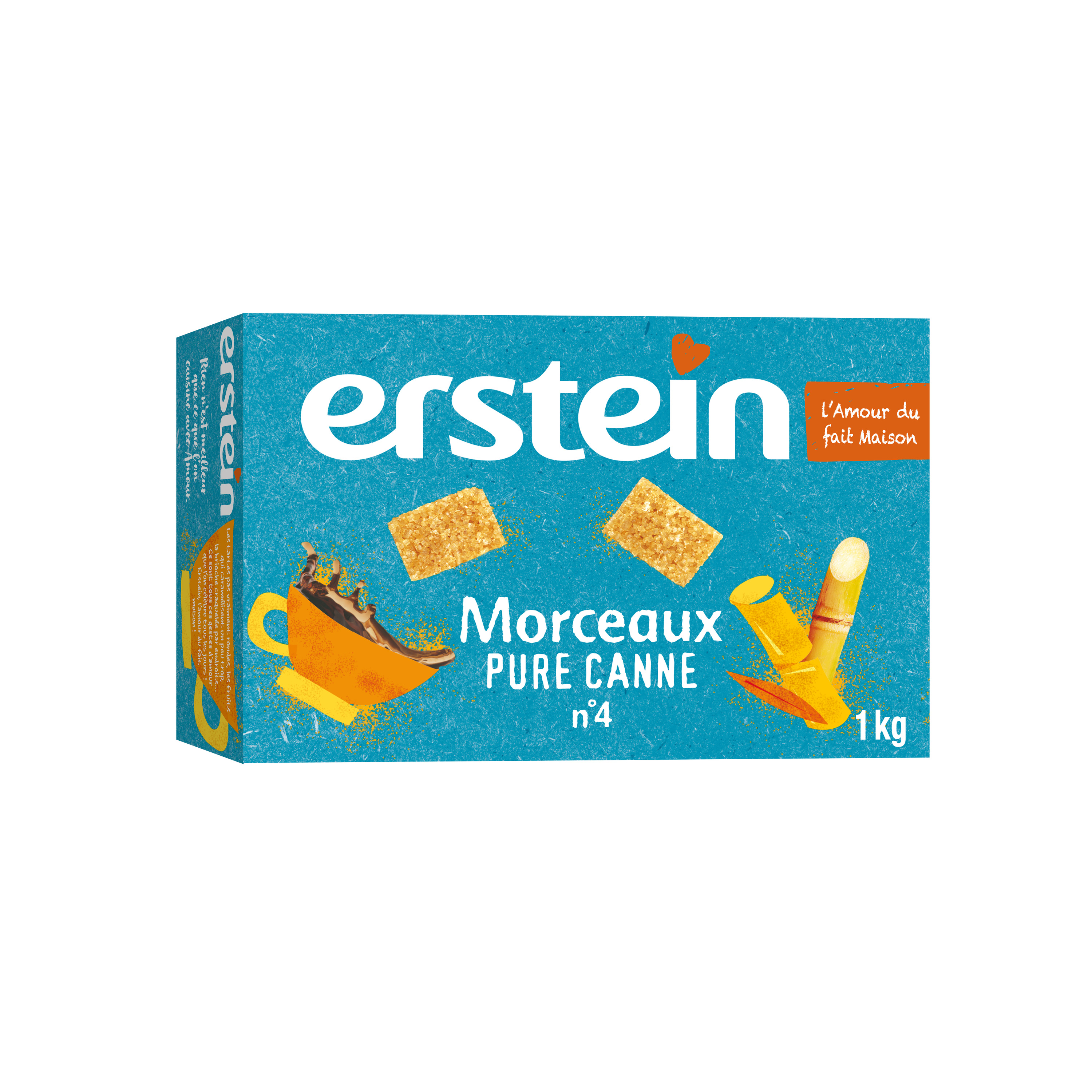 Les morceaux 4 Erstein 100% pure canne, au parfum délicat, apportent une touche intense à vos cafés, thés et tisanes.