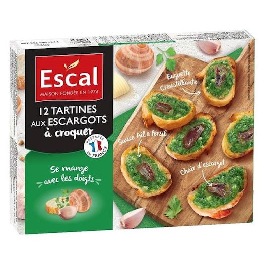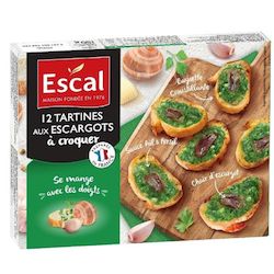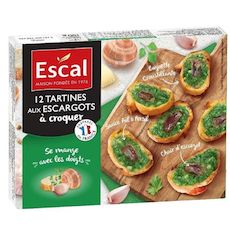 12 Tartines aux escargots à croquer, préparées au beurre, à l'ail et au persil, surgelées