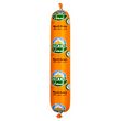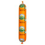Ingrédients : 68% viande de poulet, eau, peau de poulet, boeuf, sel, stabilisateur: E450, conservateurs: E262, E250, antioxydant: E300, épices, extraits d´épices, exhausteur de goût: E621,.