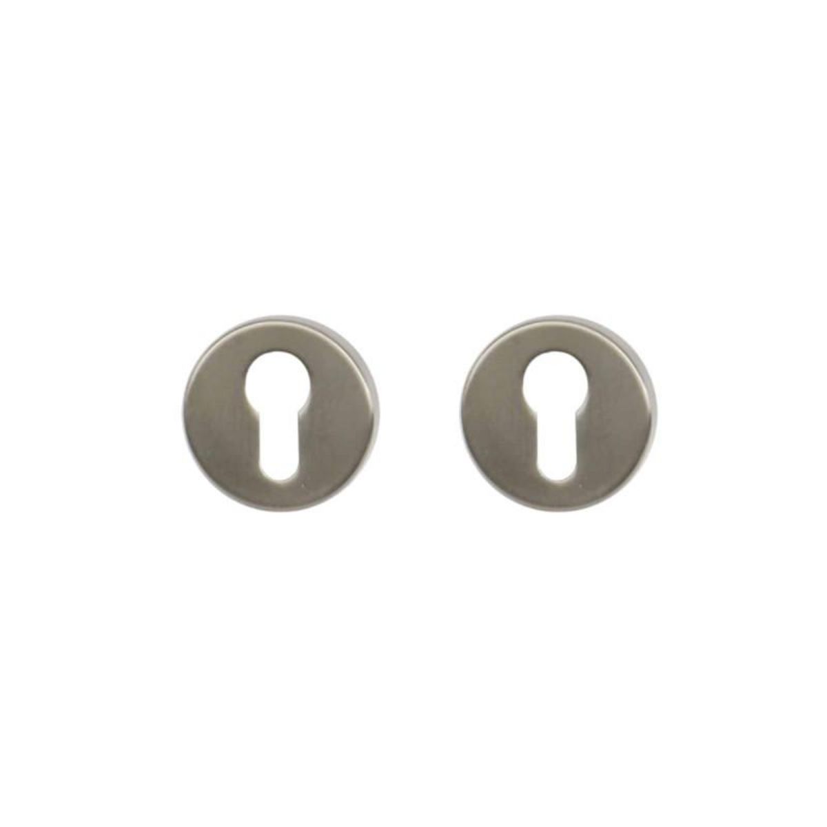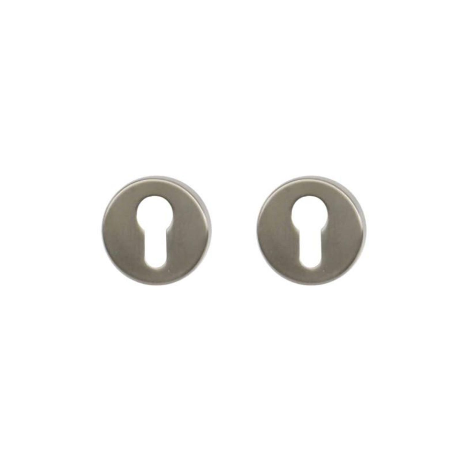 Une paire de rosace ronde pour porte modèle Junon - Cylindre - Nickelé Mat