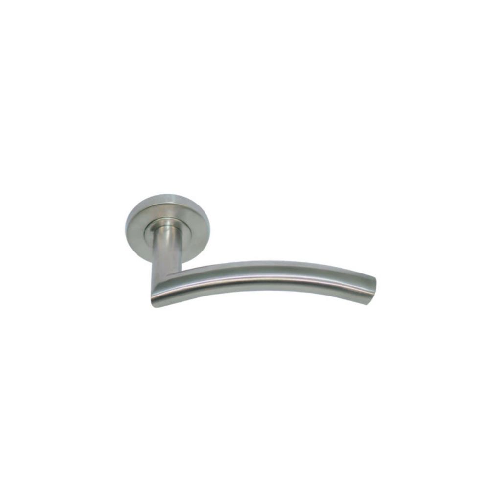 Poignées modèle Graves - inox 304 brossé x2, modèle de poignées parfait pour vos portes nouvellement installées ! Son design standard sur rosace ronde vous permettra d'installer ces poignées dans chaque pièce de votre maison.