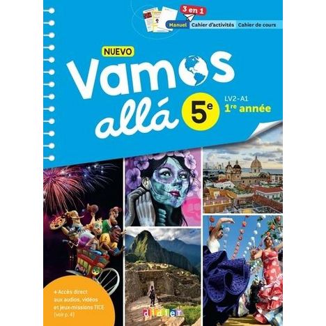 Les manuels-cahiers 3 en 1 pour débuter en Espagnol en 5e : le manuel, le cahier d'activités et la cahier de cours (pour la prise de notes) - Une prise en main simple et rapide pour une approche réaliste qui tient compte du temps de alte - Des documents authentiques, culturels et actuels - La découverte des pays hispanophones et des fêtes à chaque unité - Des activités courtes et ludiques qui encouragent l'autonomie des élèves - Des outils de réinvestissement variés et innovants : nombreux exercices, projets à faire en duo ou en groupe, jeux-missions TICE...