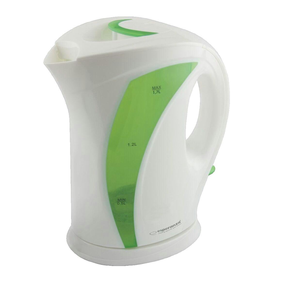 Découvrez la bouilloire électrique Esperanza EKK018G, un appareil de petit électroménager conçu pour la cuisine. Avec une capacité de 1.7 litre et une puissance de 2200 W, elle chauffe rapidement l'eau pour vos thés et infusions. Son design ergonomique moderne en blanc et vert apporte une touche d'é