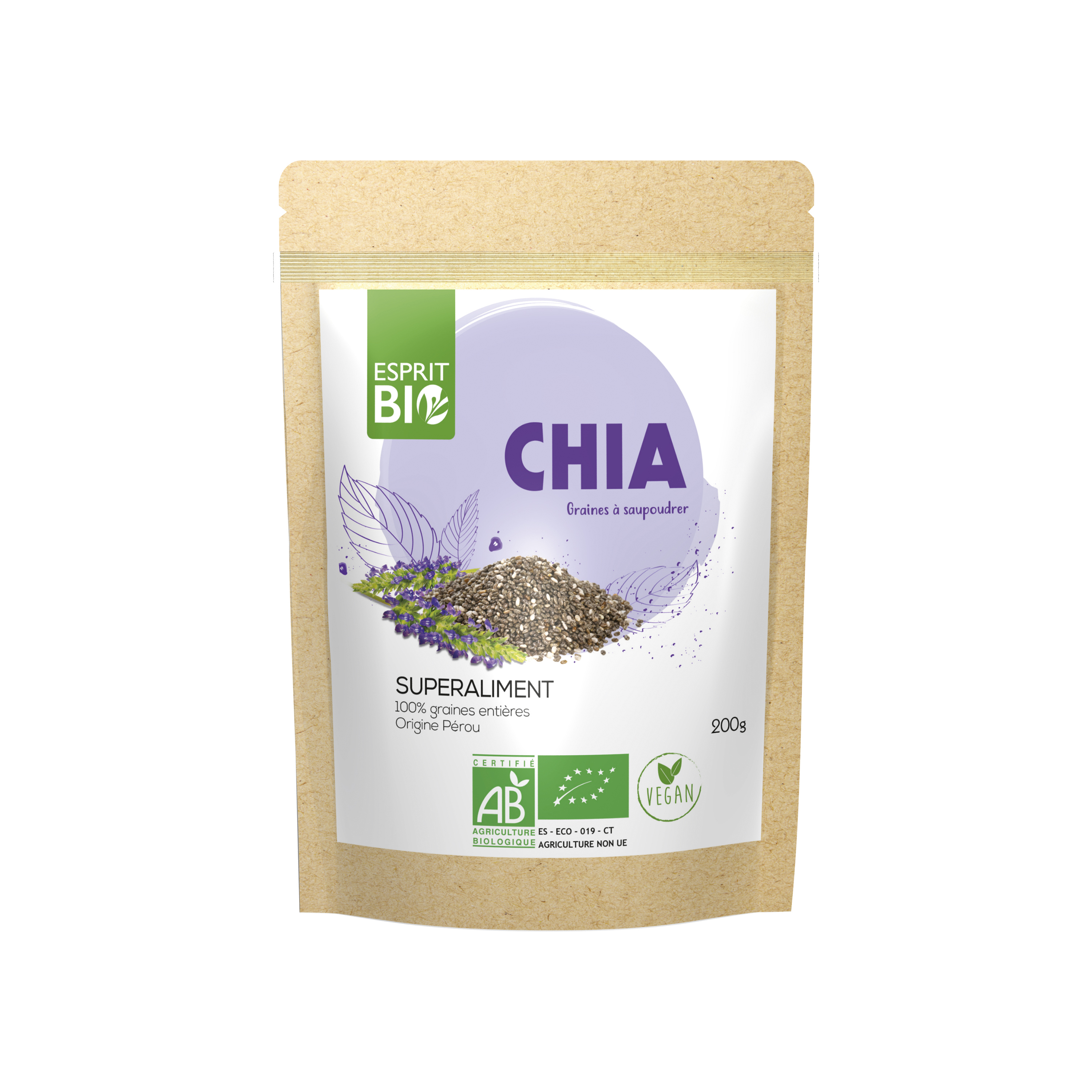 Pour toutes ses poudres et graines, Esprit Bio a privilégié un format économique, pratique et refermable.