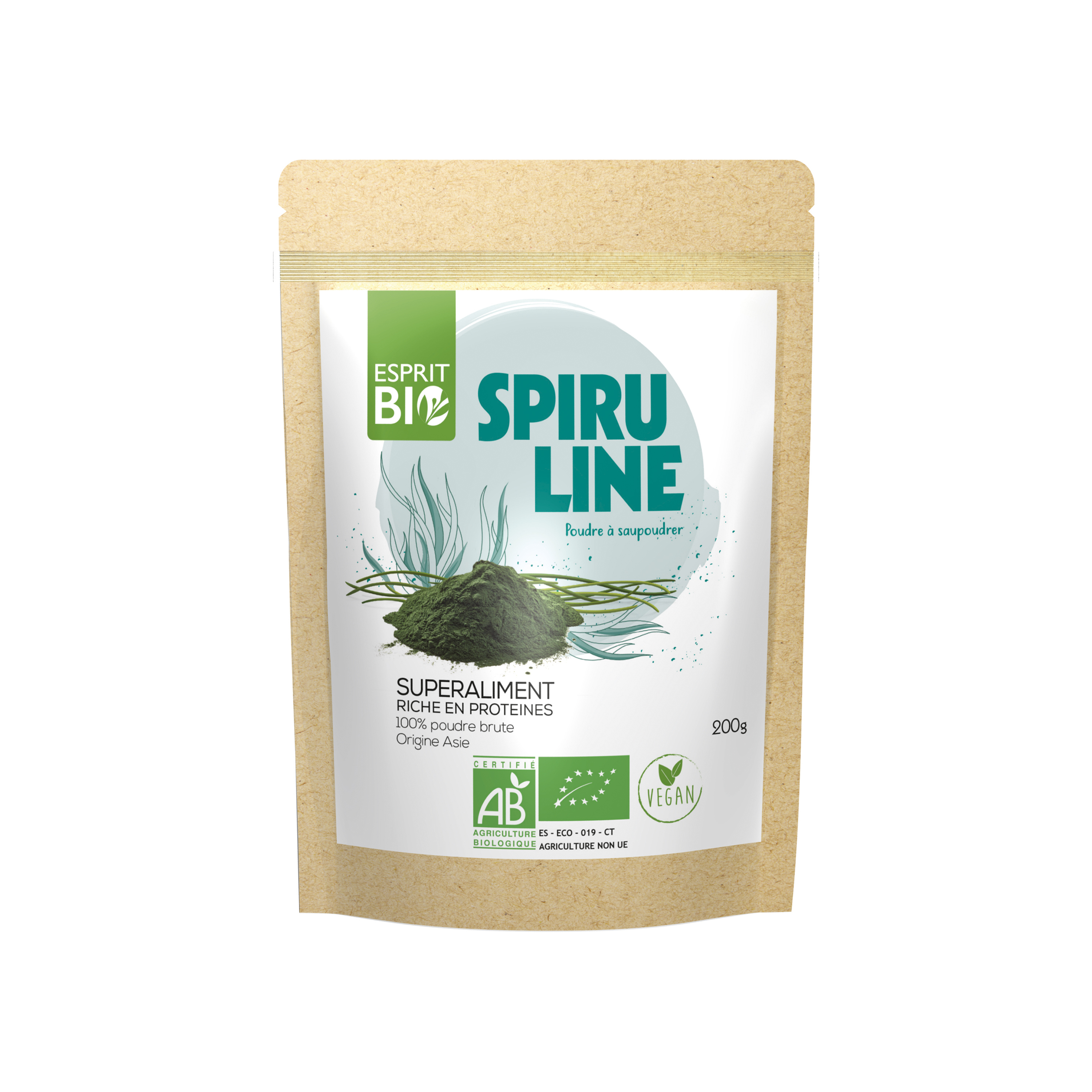Poudre à saupoudrer de Spiruline issue de l’agriculture biologique.