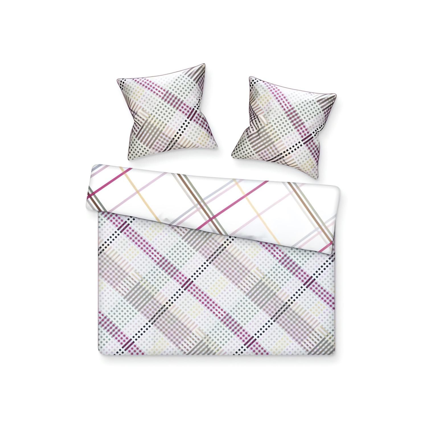 Taie d'oreiller rectangle de la marque Esprit Home, collection Match, au motif géométrique composé de losanges et rayures dans des coloris pastels de gris, taupe, rose et blanc. Dimensions : 50x75 cm Composition : 100% coton 57 fils/cm2