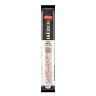 Ingrédients : Viande de porc (145gr pour obtenir 100gr de produit fini (51% maigre de porc ibérico)), proteines de porc, sel, poivre, sucre, antioxydant (absorbate de sodium), conservateurs (nitrate de potassium, nitrite de sodium). Boyau comestible de porc.