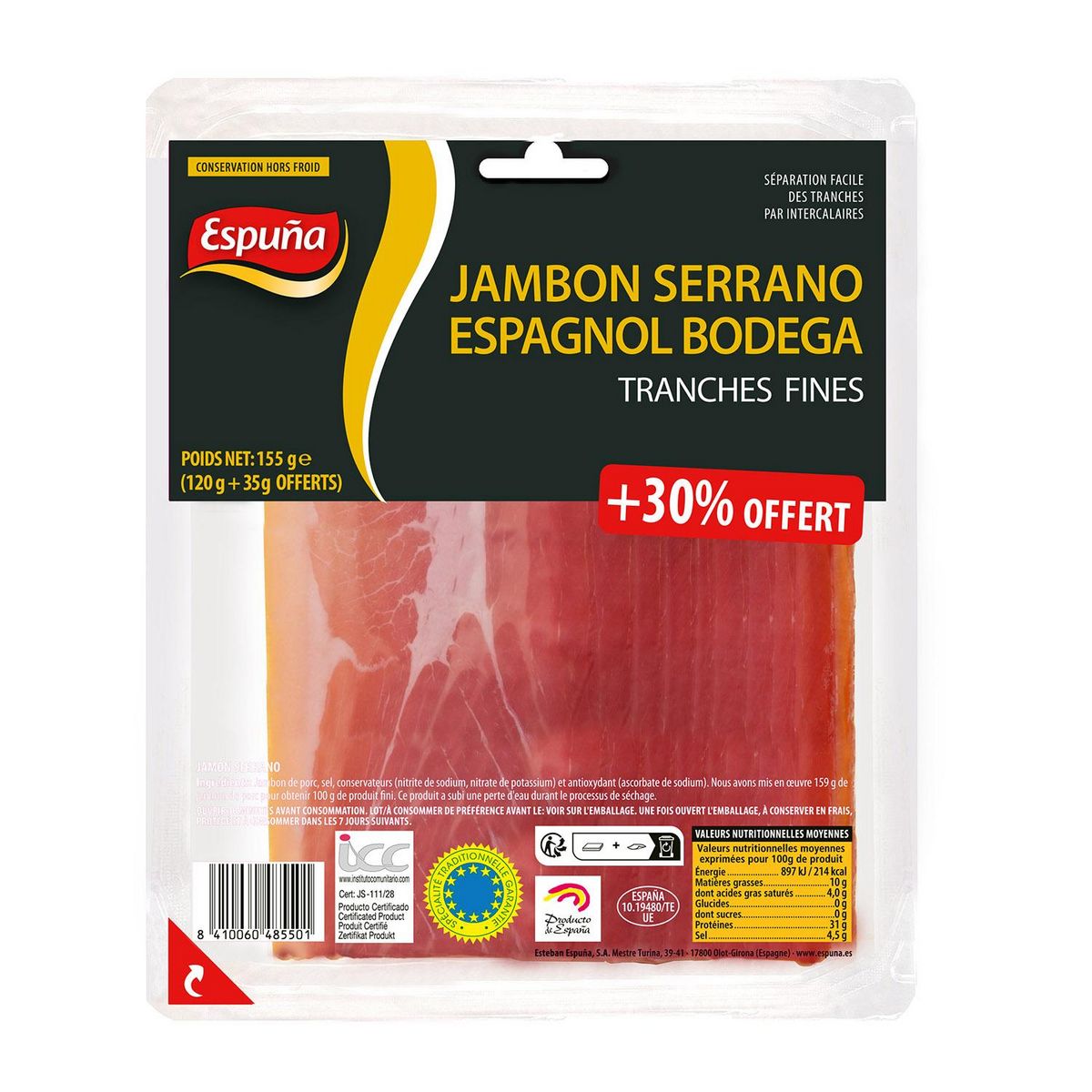 JAMBON SERRANO ESPAGNOL 155GR + 30% (120GR + 35GR)