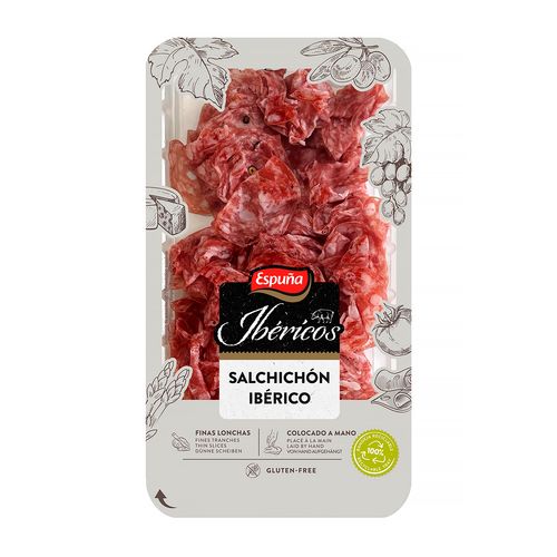 Ingrédients : Viande de porc ibérico, sel, dextrose, protéine de SOJA, épices, arômes, stabilisants (triphosphate pentasodique, diphosphate disodique), exhausteur de goût (glutamate monosodique),