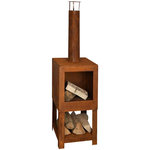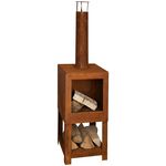 Cette cheminee rustique est faite d'acier avec une belle finition rouillee. Vous pouvez stocker votre bois de chauffage sur un support de buches integre, pratique en dessous. Cette cheminee frappante conviendra a n'importe quel decor exterieur et fera un grand ajout a votre jardin ou patio.