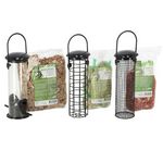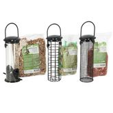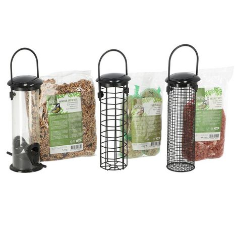 Cet ensemble complet de mangeoires pour oiseaux de 3 pieces de la marque Esschert Design contient tout ce qui est necessaire pour attirer une variete d'oiseaux dans votre jardin. L'ensemble se compose de differents systemes d'alimentation et des aliments qui les accompagnent. Ensemble de mangeoires