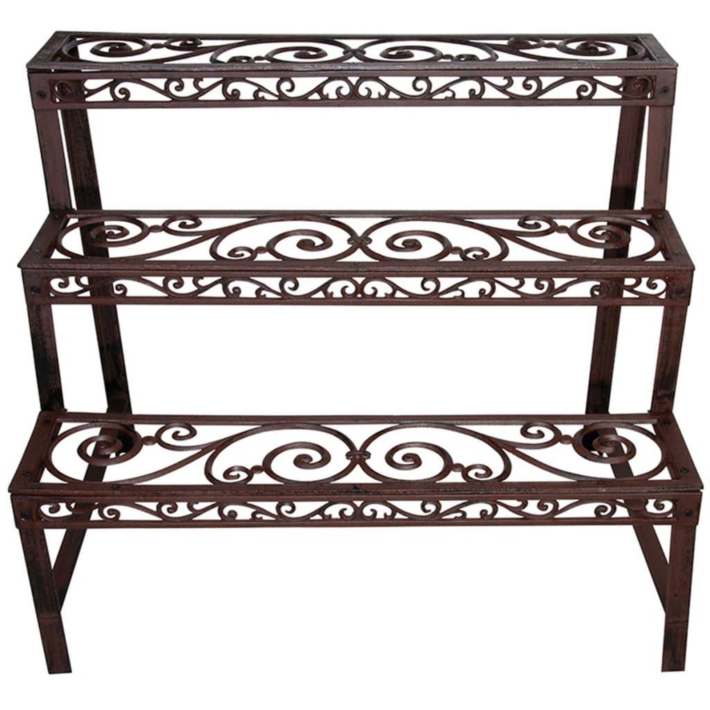 Cet etagere rectangulaire BPH33 de la marque Esschert Design presente un elegant cadre en fonte elegamment incurve et deviendra surement le point central de votre jardin, balcon, terrasse, etc. Le support a plantes a 3 niveaux peut etre place contre n'importe quel mur. Son cadre en fonte contribue a