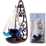 Placee sur un support en fonte, la bouteille en verre cristal avec un tube mince et ondule et rempli d'un liquide bleu ajoutera une touche de beaute a votre decor. Avec une certaine quantite d'air scelle a l'interieur, le barometre indiquera des changements atmospheriques avec le niveau d'eau dans le bec verseur. Avec ce verre de meteorologique, vous pouvez voir par vous-meme quelles conditions meteorologiques vous pouvez attendre.