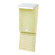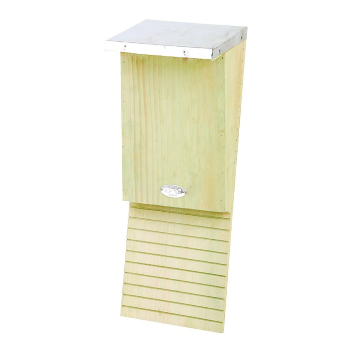 Ce nichoir spécialement conçu leur offre un espace sécurisé et confortable, idéal pour différentes espèces, dont la chauve-souris commune et la pipistrelle rugueuse. L'intérieur est doté d'encoches anti-glisse facilitant l'atterrissage et la montée, tandis que le toit en zinc assure une protection durable.