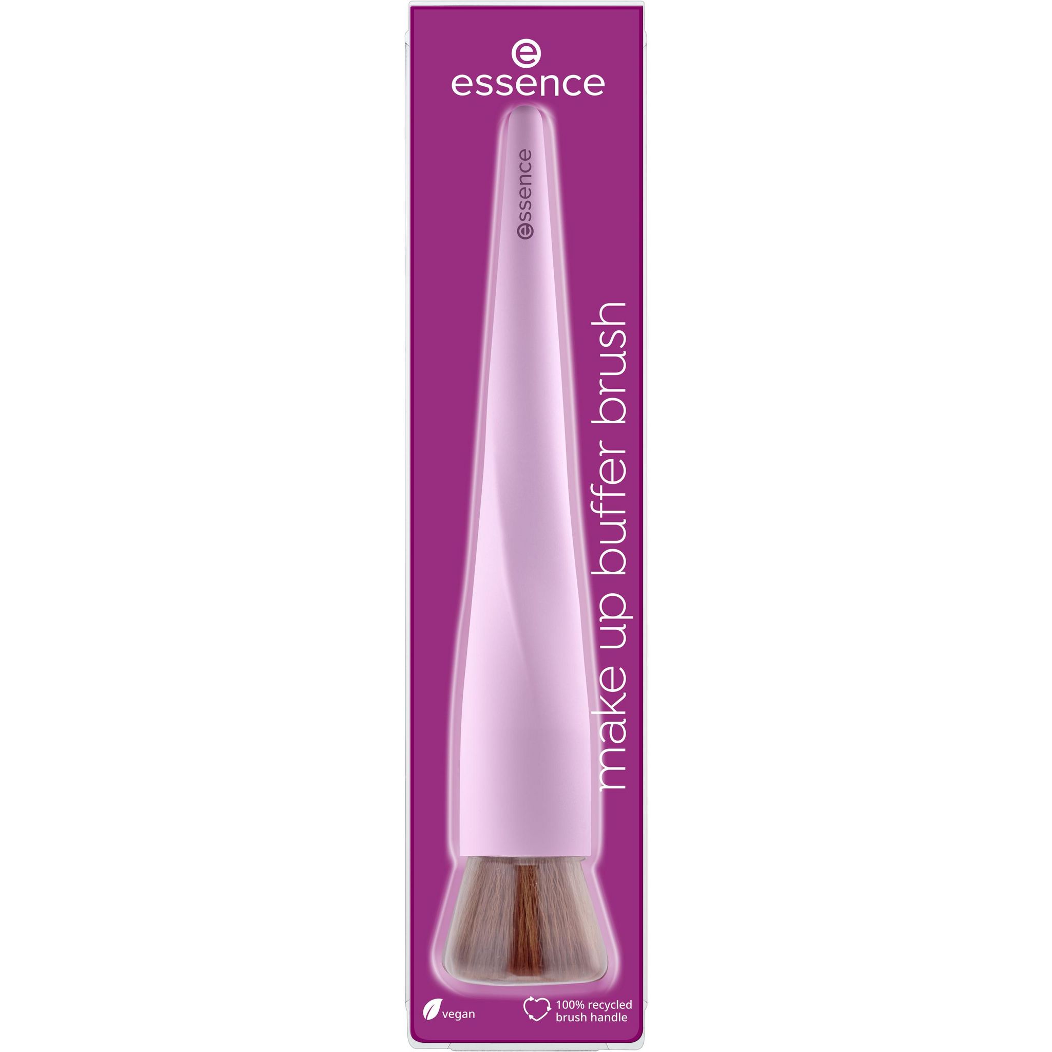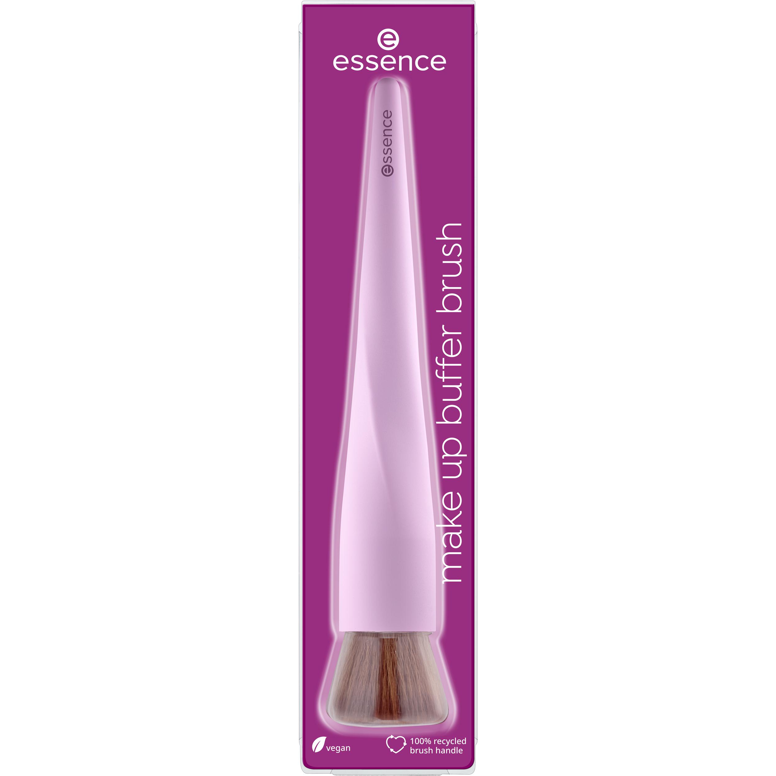 L’accessoire idéal : le pinceau essence Make-up buffer brush 01 Buff away your problems vous permet d’appliquer facilement votre fond de teint. Sa surface plate est idéale pour les textures crémeuses et liquides des fonds de teint et des crèmes de jour teintées. Grâce à ses poils doux et à son manche agréable au toucher, vous pouvez appliquer et estomper facilement le fond de teint. Couleur et forme originales. Son manche est composé à 100 % de matière recyclée.