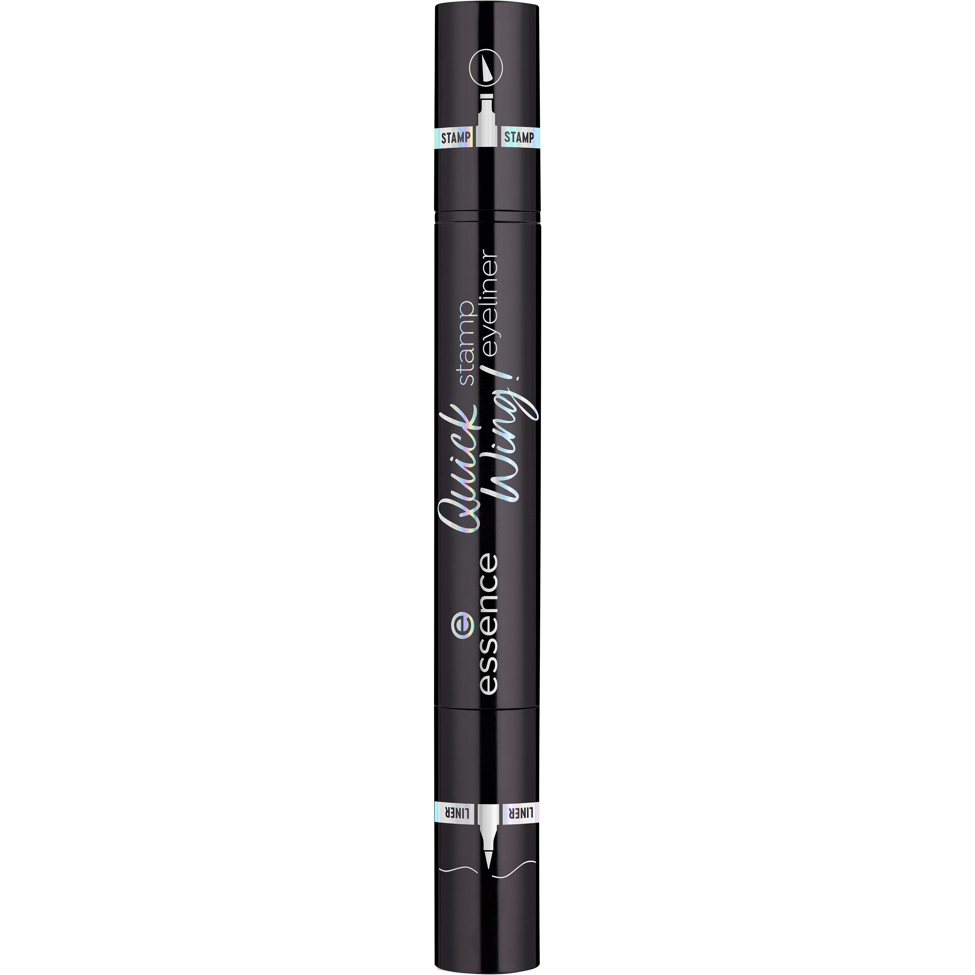 Grâce à l’eyeliner essence Quick Wing! vous pouvez facilement créer des virgules symétriques et longue tenue. Il est donc adapté aux expertes du maquillage comme aux débutantes. Le côté tampon permet de créer des virgules impeccables. La pointe feutre à l’autre extrémité permet de relier facilement la virgule à votre œil et de réaliser un tracé sur toute la longueur de la paupière.